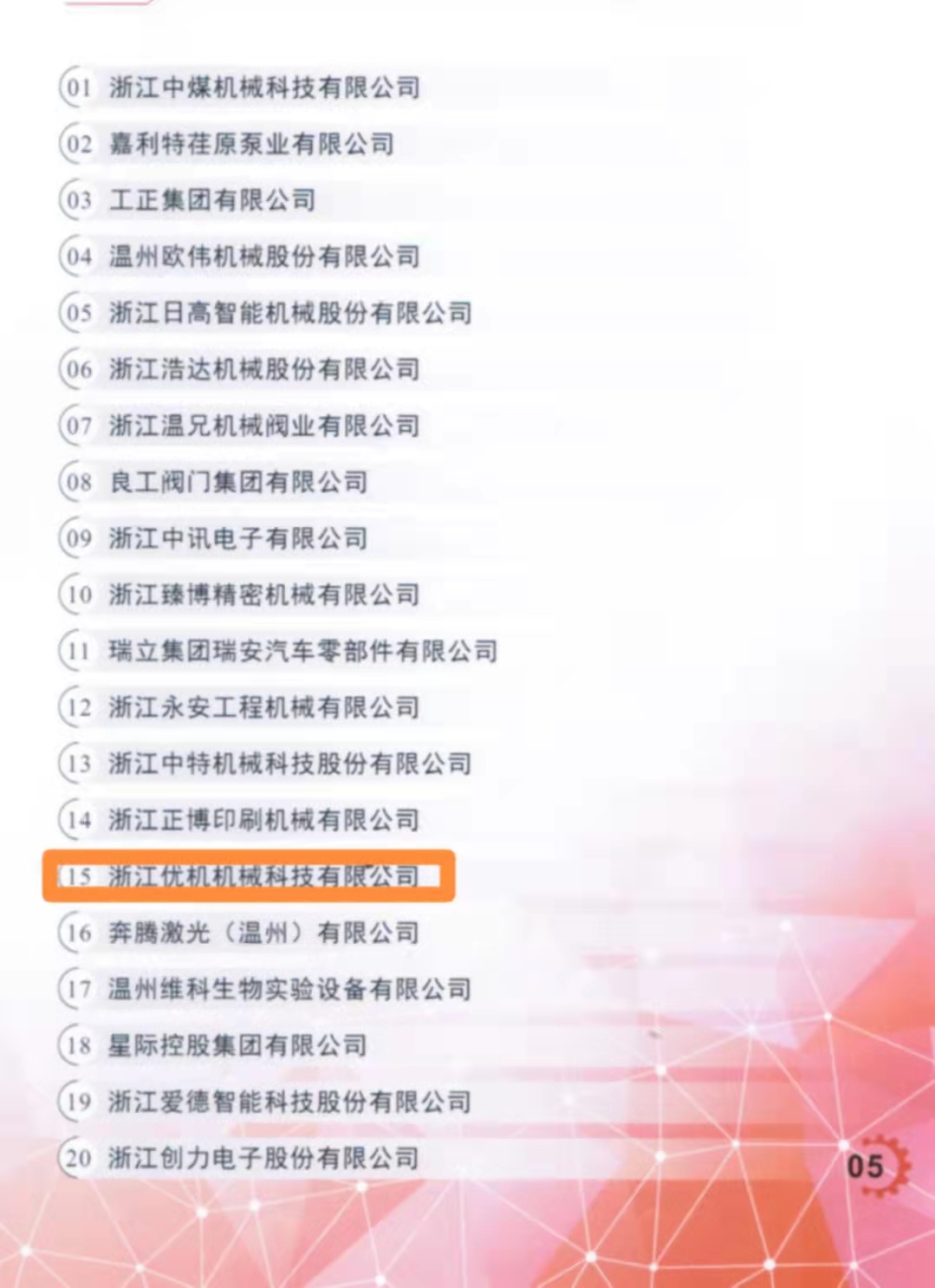 浙江優(yōu)機(jī)機(jī)械科技有限公司 在溫州市智造業(yè)高質(zhì)量發(fā)展大會入榜溫州好產(chǎn)品智造新勢力光榮榜,主辦單位溫州市經(jīng)濟(jì)和信息化局。