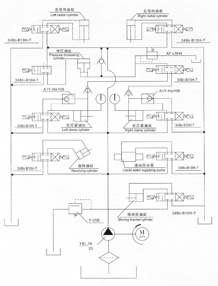 三、接通電源,按油泵啟動按鈕,檢查電機轉(zhuǎn)動方向,是否正確(順時針方向)進行5—1 O分鐘空載運轉(zhuǎn)后,調(diào)節(jié)油泵壓力在5 0MPa進行試機,各種動作,檢查各管路有無泄漏,發(fā)現(xiàn)不良現(xiàn)象,應(yīng)立即停機排除。